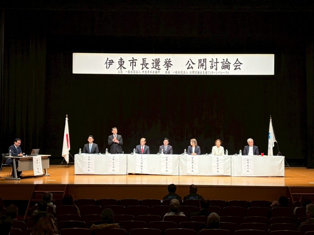 11月25日(火)伊東観光会館ホールにて伊東市長選挙公開討論会を一般来場及びライブ配信にて開催しました!立候補予定者の声を市民の皆様へお伝えし、有権者一人ひとりの政治への参加意識を高めることが、明るい豊かな地域社会を築き上げるために必要であると考え、(一社)伊東青年会議所にて主催をさせていただきました。